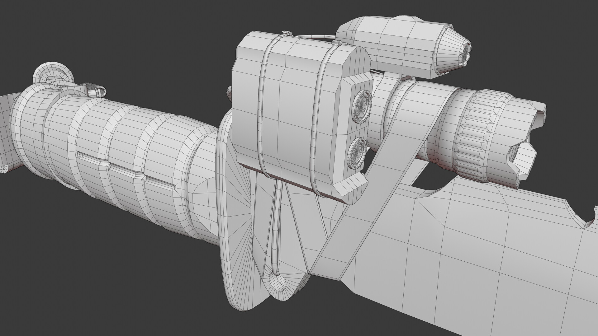 This innovative Bipod Knife, featuring a laser and flashlight, draws inspiration from the distinctive C100 Knife in Battlefield 4. Meticulously crafted in Blender, the low and high poly meshes were modeled and unwrapped before undergoing baking and texturing in Substance Painter. The final renders, executed in Blender Cycles and refined in Photoshop, bring out the essence of this unique creation. Breaking down into three main components – the Knife, Bipod, and Attachments (Laser + Flashlight + Battery) – each part boasts a separate texture set. This deliberate separation ensures that even the minutest details on small elements are vividly portrayed, contributing to realistic and high-quality renders.