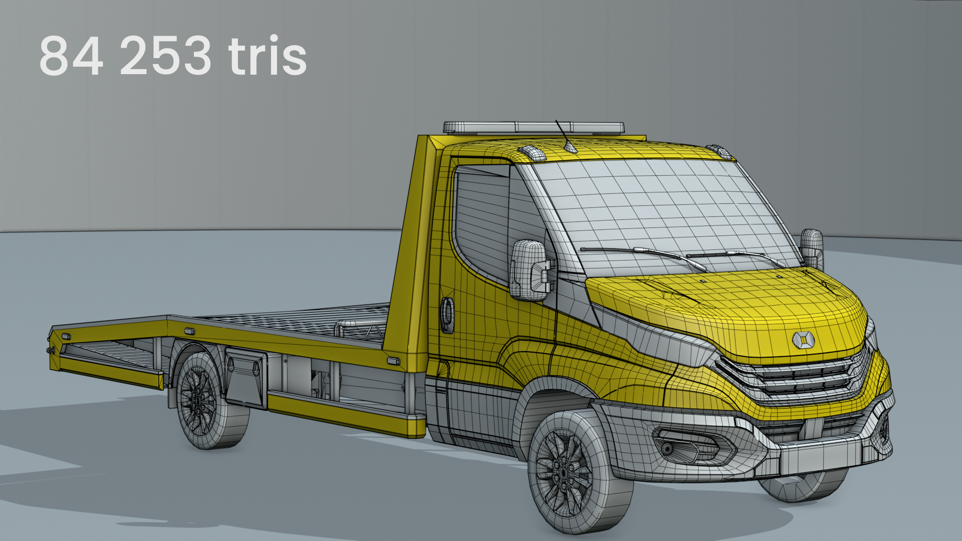 I created this Iveco Daily Vehicle Pack consisting of seven optimized vehicles designed as in-game environment assets driven by AI. The primary objective was to create diverse variants based on a single base model to enhance visual variety in the game world. The project began with modeling the base vehicle, followed by creating variants such as the Minibus Tourys, Minibus Start, Box Van, Dropside, Car Transporter, and standard vans in multiple sizes. Each model was UV-unwrapped and textured to meet the client’s technical specifications. All assets were optimized for seamless integration into Unity, maintaining polycounts between 80,000 and 100,000 triangles per model to balance detail and performance. The result is a flexible pack that adds realistic vehicle variety to in-game environments.