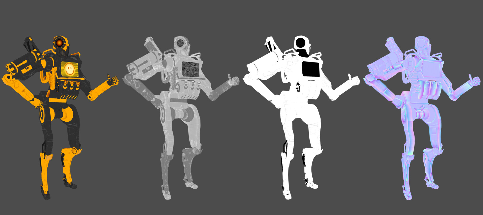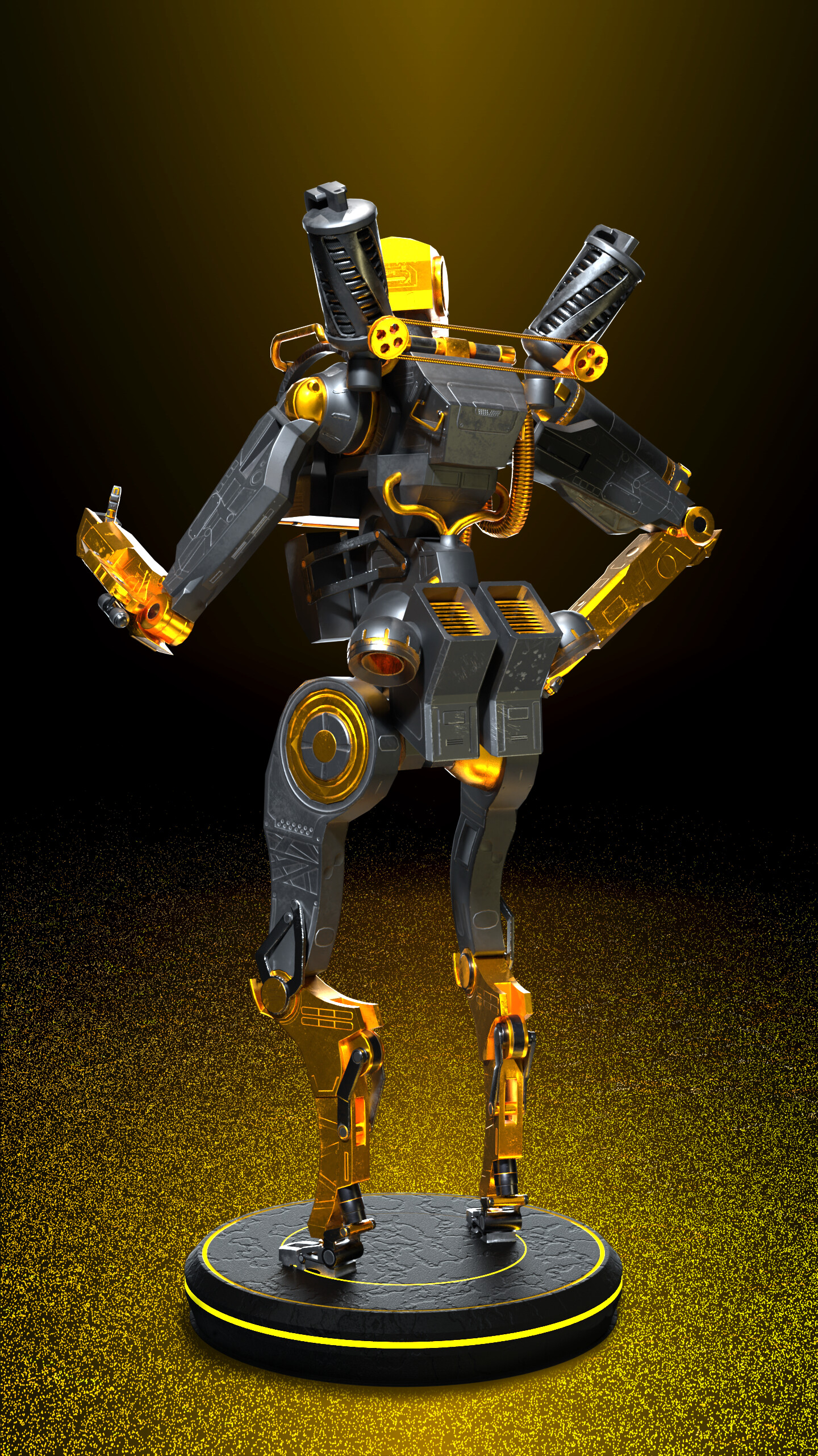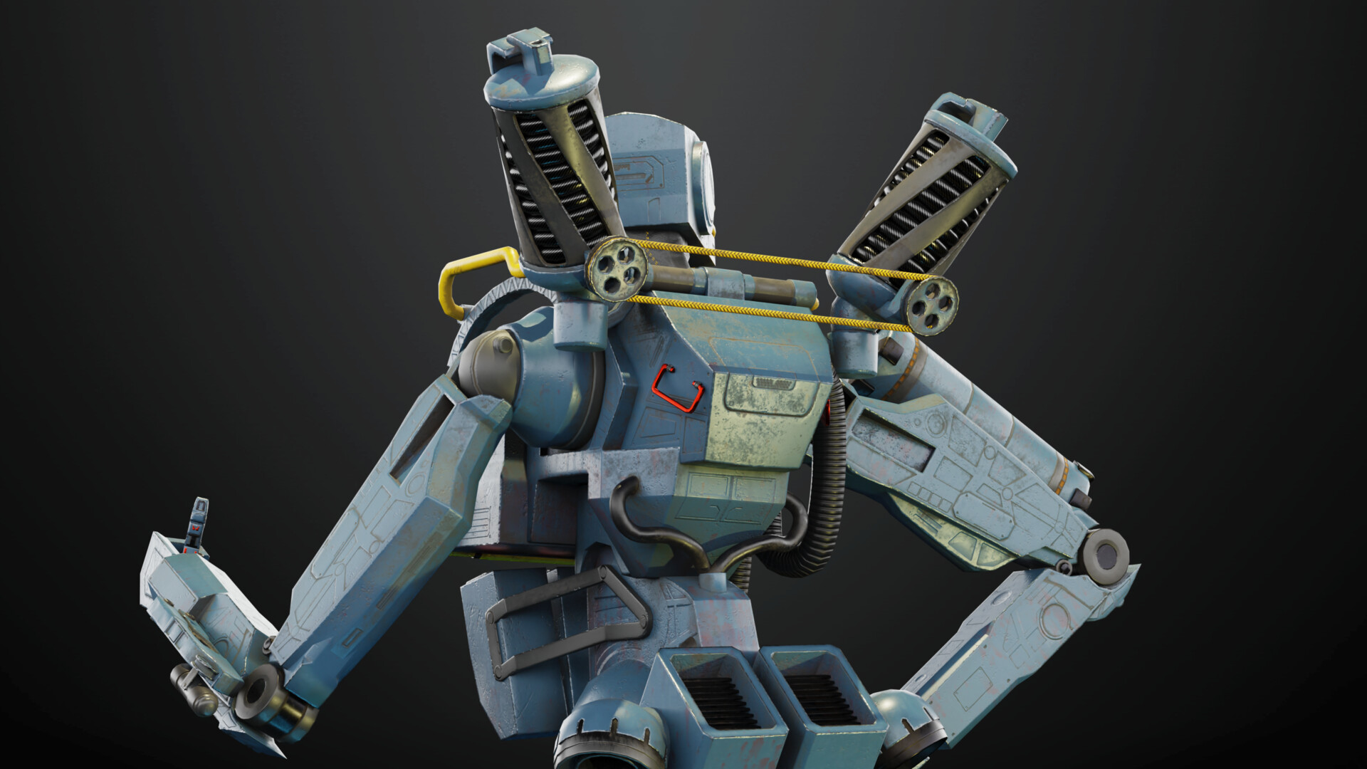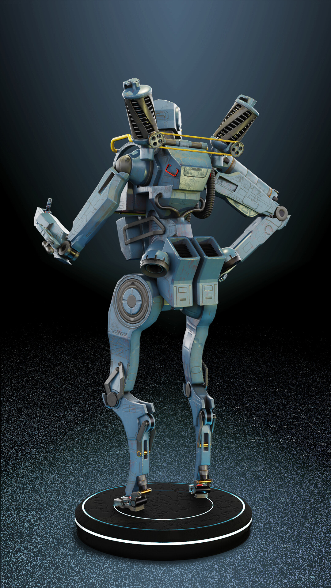 Explore my imaginative take on the Apex Legends character, Pathfinder, with not one, but two distinct versions: the classic blue rendition and my personally designed golden-black skin. Crafted in Blender and textured using Substance Painter, these 3D models showcase my creative flair, incorporating unique shapes and modifications while maintaining game-ready functionality. For added diversity, I implemented a simple rig enabling dynamic poses for renders. The intentional departure from a direct replica of the original Pathfinder results in a robot with a slightly thicker build, adding a touch of personality to the design.